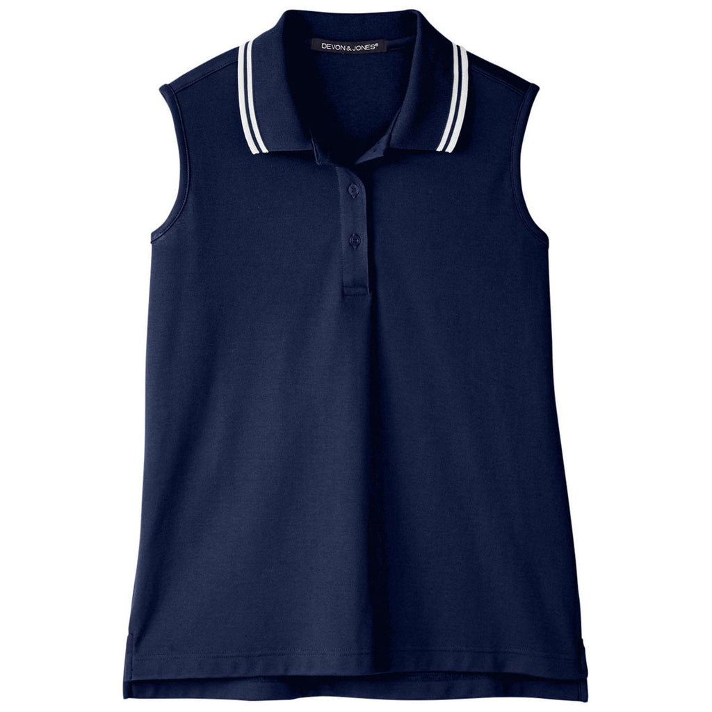 Devon & Jones Women's Navy/White CrownLux Performance Plaited Tipped Sleeveless Polo