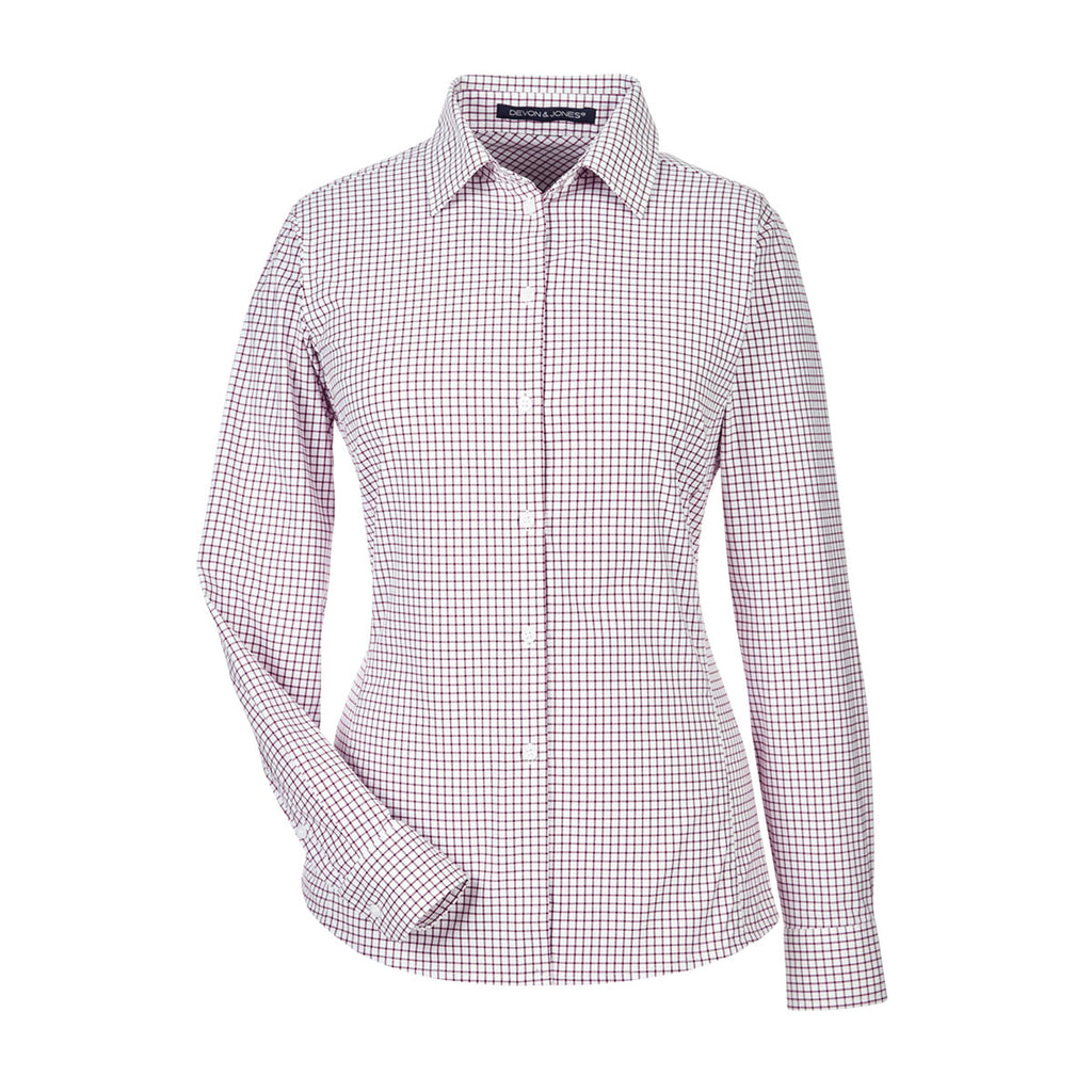 Devon & Jones Women's Burgundy/White CrownLux Performance Micro Windowpane Shirt