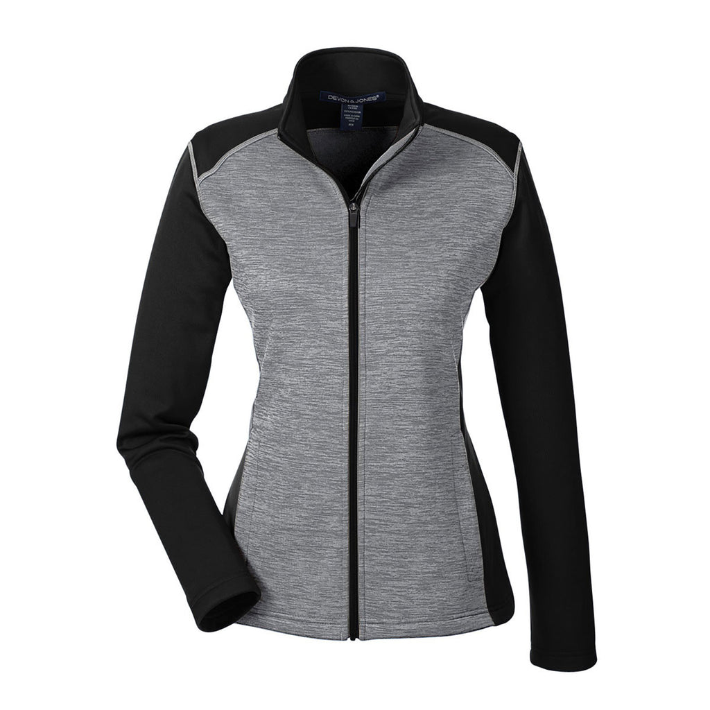 Devon & Jones Women's Black Heather/Dark Grey Heather Newbury Colorblock Melange Fleece Full-zipCorresponding Men's Style:Devon & Jones Men's Black Heather/Dark Grey Heather Newbury Colorblock Melange Fleece Full-zip