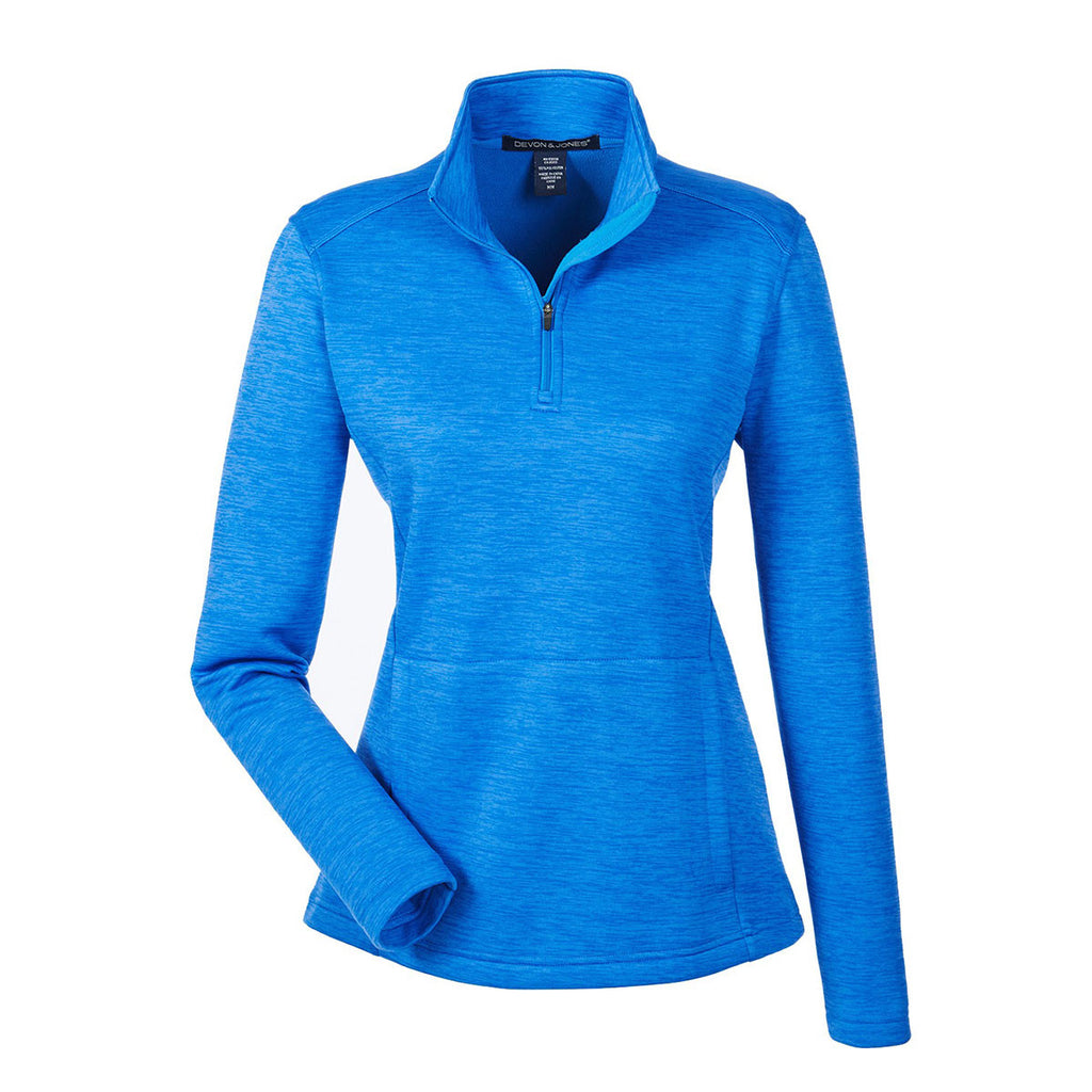 Devon & Jones Women's French Blue Heather Newbury Melange Fleece Quarter-zip