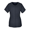 Slip on this Devon & Jones Women's Dark Teal Perfect Fit Short-Sleeve Crepe Blouse to infuse casual comfort into your ensemble thanks to soft hand, fluid drape and flowy look of 100% polyester crepe. A discreet placket conceals buttons. It flaunts an always-flattering and silhouette ready to mix with your existing wardrobe for instant flair. Other features include double layer back yoke with center back pleat and side slits. Create an immediate sense of recognition, deepen your corporate identity and build familiarity and trust for your brand by adding your company's logo to this crepe blouse.Highlights