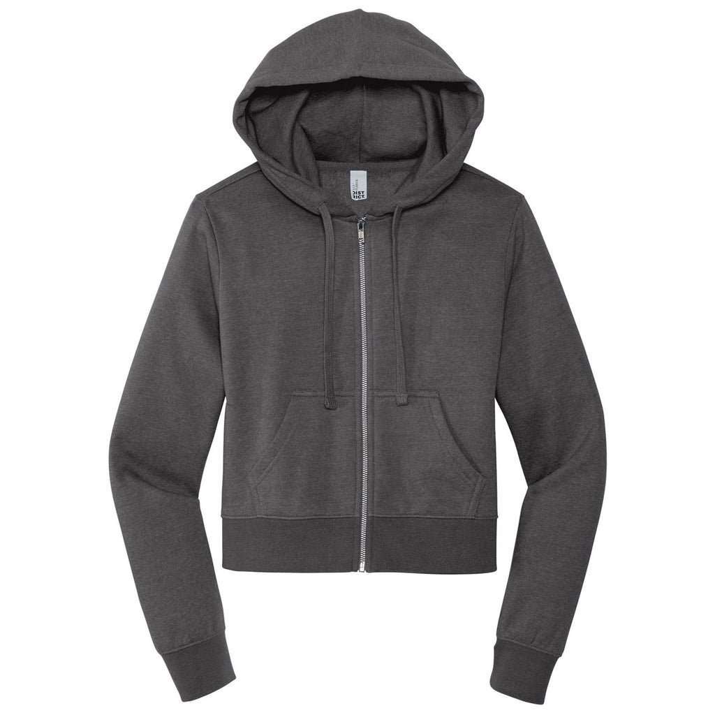 Choose a custom design for the District Women's Heathered Charcoal V.I.T. Fleece Full Zip to showcase team spirit or support. The soft hoodie is great for embroidery in the cotton/polyester blend that will wrap you in comfort. Ideal as warm-up gear or to wear daily as a statement piece. The modest crop length makes this easy to layer and enjoy.