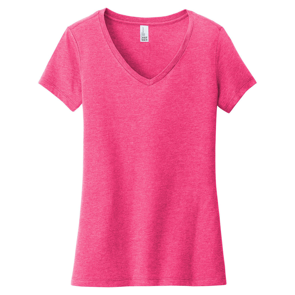 You do not need to wear a tux to feel very important, when you order the decorated District Women's Fuchsia Frost Very Important Tee V-Neck. The fashionable short sleeve shirt features shoulder to shoulder taping that presents a professional appearance for job candidates attending recruiting events. Attach a custom logo to raise the bar for marketing products and services at industry trade shows. Super soft 100% ring spun combed cotton resists rips and tears to give you go to corporate apparel for years to come. The slightly slimmer body and shorter sleeves make the tee v-neck perfect for active outdoor enthusiasts.