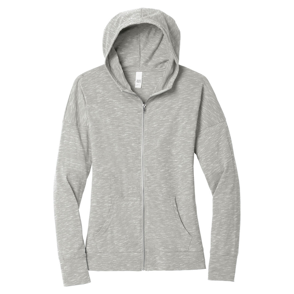 For corporate apparel that will make your team proud, give away the decorated District Women's Light Grey Medal Full-Zip Hoodie. Designed with a front pouch pocket for storing electronic devices and business accessories, the full-zip, lightweight hoodie contains 90% ring spun cotton that delivers supreme comfort. The fabric is finished with polyester fibers that bolster the strength of the versatile outerwear. Self-fabric hem and cuffs create an attractive appearance that will get the attention of the people you meet at civic events. Add a custom logo on the embroidered area to gain more loyal customers.Corresponding Men's Style:District Men's Light Grey Medal Full-Zip Hoodie