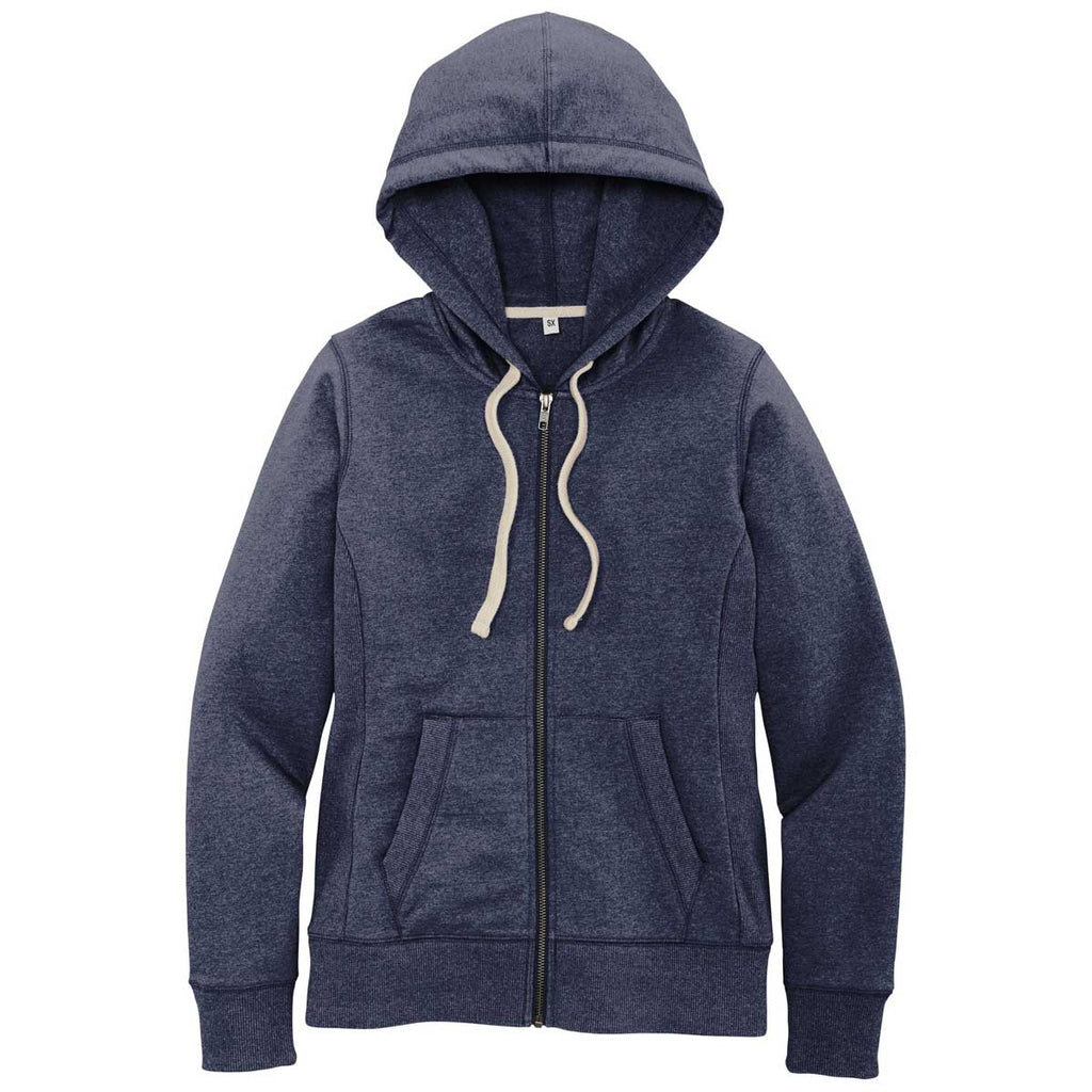 Add embroidery to the District Women's True Navy Re-Fleece Full-Zip Hoodie for a personalized look on a highly comfortable, affordable full-zip hoodie. Made of a blend of recycled cotton and recycled polyester, this hoodie wraps you in warmth at a price point that means it could easily be a custom gift for everyone you know. Add a company logo to give these as employee gifts or use as uniforms for those who need a casual look that is also warm. Rib knit side panels and a pocket opening at the hem add those small details that matter.Corresponding Men's Style: District Men's True Navy Re-Fleece Full-Zip Hoodie
