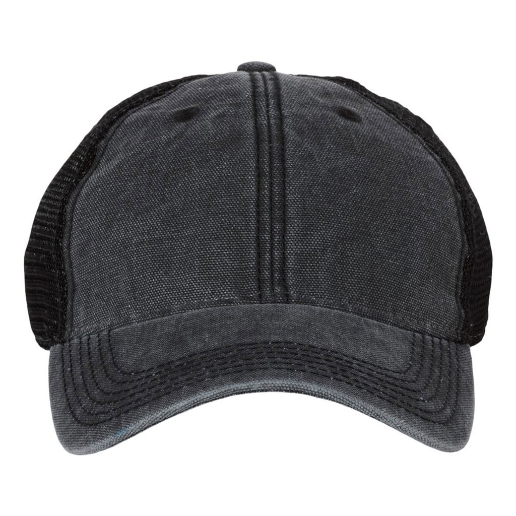 Go old school with embroidery on a Legacy Black Dashboard Trucker Cap. In true trucker cap style fashion, the cotton polyester front is completed by the washed canvas crown and mesh back. The worn in look adds flair to this traditional style with the pre-curved visor for impressive fit. Add a company logo to use as part of employee apparel or uniform wear or add a custom logo to create a unique gift or sales item. The unstructured, six-panel, low profile design is comfortable from day one in the one size fits most style with snapback closure for adjustment.