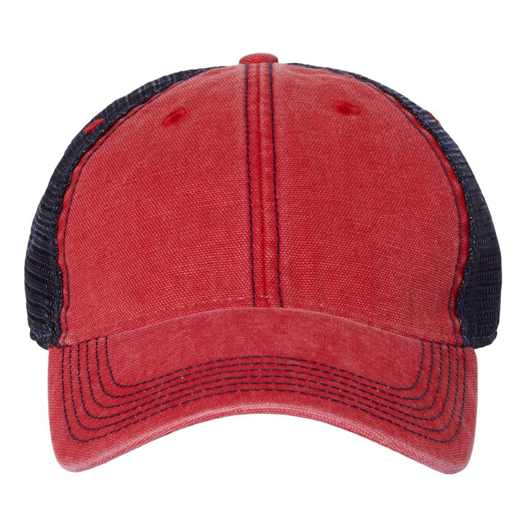 Go old school with embroidery on a Legacy Scarlet Red/Navy Dashboard Trucker Cap. In true trucker cap style fashion, the cotton polyester front is completed by the washed canvas crown and mesh back. The worn in look adds flair to this traditional style with the pre-curved visor for impressive fit. Add a company logo to use as part of employee apparel or uniform wear or add a custom logo to create a unique gift or sales item. The unstructured, six-panel, low profile design is comfortable from day one in the one size fits most style with snapback closure for adjustment.Highlights