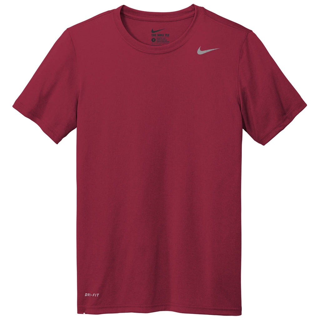 Nike Men's Team Maroon Team rLegend Tee with a custom logo creates the perfect tee for whatever your day holds. The peak performance tee has a low environmental impact and Dri-FIT technology to keep you comfortable thrughout the day. Lightweight enough to serve as workout wear, but stylish enough to wear on the golf course, tennis court, or basketball court. Order today.This product cannot ship outside of the United States.