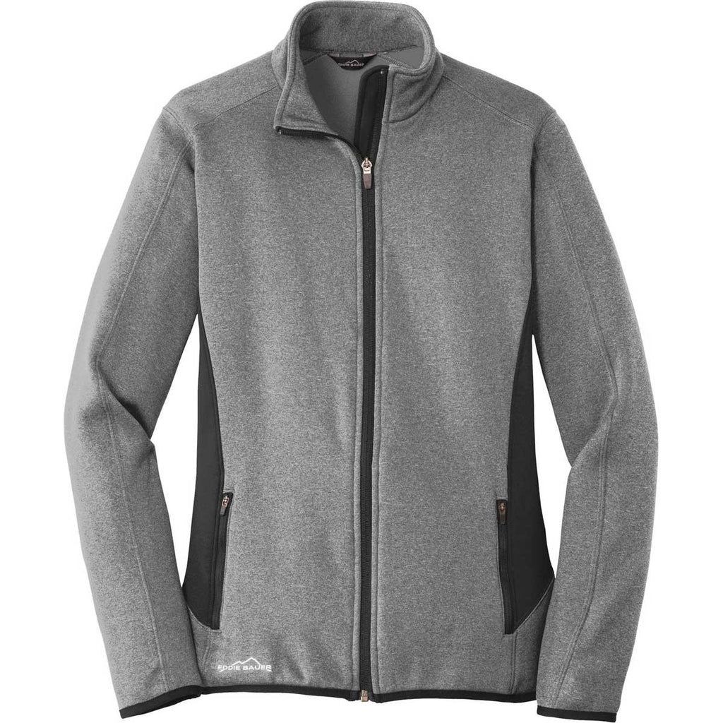 When you need to move around, whether it's outdoors decorating for the holidays or indoors competing in a league game, you want a fleece jacket designed to maximize movement. The Eddie Bauer Women's Grey Heather Full-Zip Heather Stretch Fleece Jacket gives you the movement flexibility to complete home improvement projects and compete in your favorite sport. Highly breathable brushed back fleece quickly removes the sweat that builds up on your skin. Take advantage of the imprint area on the jacket to attach your company logo. Enjoy the convenience of storing personal possessions in one of the rust resistant front zippered pockets.