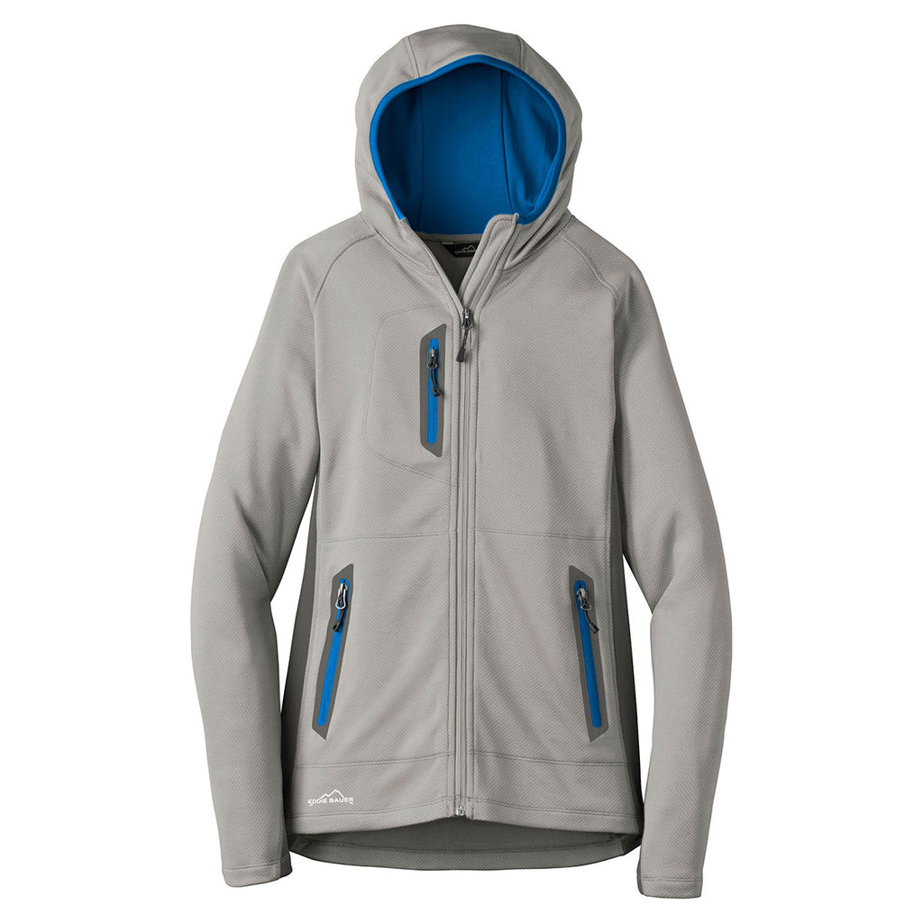 Eddie Bauer Women's Grey Cloud/Grey Steel/Expedition Blue Sport Hooded Full-Zip Fleece Jacket