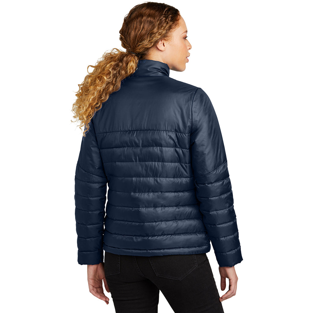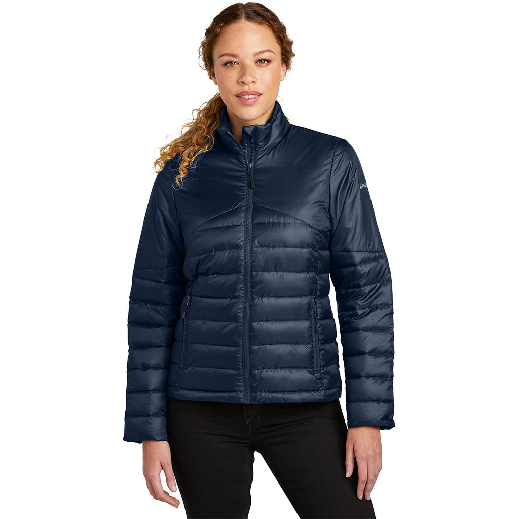 Add embroidery to the Eddie Bauer Women's River Blue Navy Quilted Jacket for a great cooler weather look that will turn heads. This jacket comes together with minimal bulk yet maximized performance for all your adventures. A perfect choice for snowboarding, skiing, or other outdoor fun. Place an order today.This product can only ship within the United States, Puerto Rico, Canada, and Mexico.
