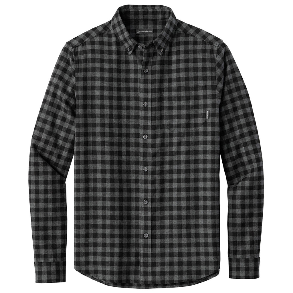 Eddie Bauer Men's Deep Black Mini Buffalo Long Sleeve Favorite Flannel Plaid Shirt