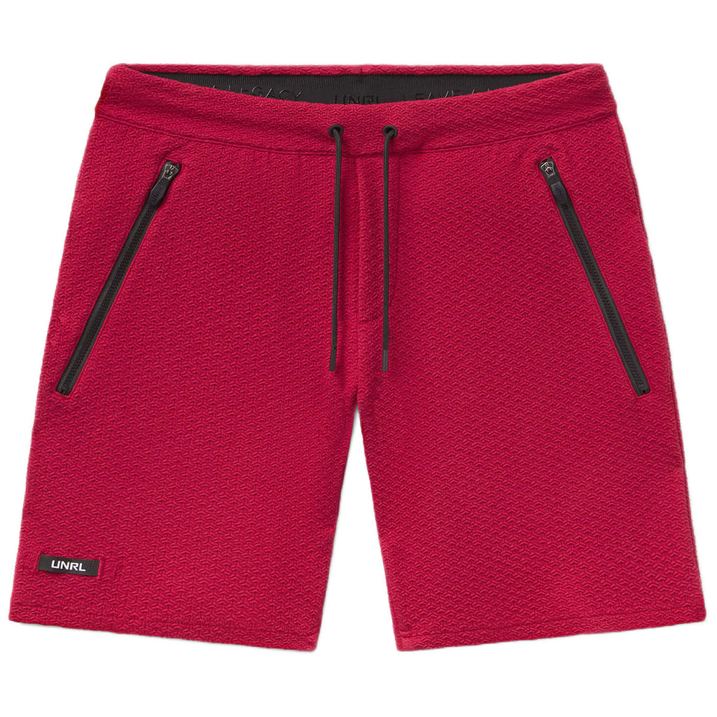 Enjoy a custom look with UNRL Men's Garnet Red Elevation Short. These shorts are the ultimate in comfort as you travel, lounge, or start your personal training. Made of a midweight material that can be enjoyed year-round, the knit fabric offers stretch, moisture wicking, and odor control to keep you looking and feeling great all day.Highlights
