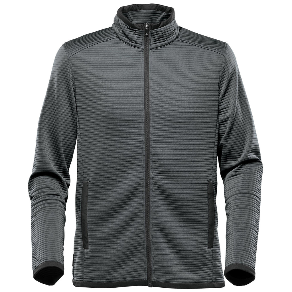 Add embroidery to the Stormtech Men's Graphite Andorra Jacket to a classically styled look that can easily go from corporate outer wear to a dinner out with friends. The two layer, fleece lined jacket is for the versatile wearer that is comfortable hiking a mountain trail and cruising the city streets. The high collar creates core temperature regulation to keep you warm through a comfortable fit. The kanga pockets keep keys, phone, and other small items at hand. Add a company logo to use as employee apparel that will keep the professional appearance that customers expect. This full front zip design has small, almost quilted lines throughout for a clean appearance.