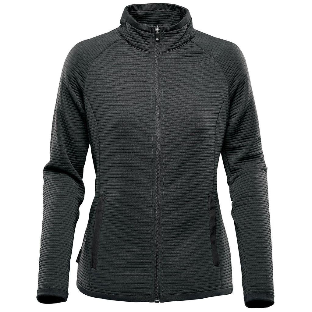 Add a custom logo to the Stormtech Women's Black Andorra Jacket for an updated classic look in a full front zip design. The simple, two-layer fleece lined jacket offers a flattering fit that can easily go from work to hanging out with friend and chilling around a campfire. Add a custom logo to use as warm-up gear when working out or give as custom gifts to those you care about in life. A company logo will create a nice addition to uniforms to present sleek, clean appearances for employees. Simple, kanga pockets keep small items secure.Corresponding Men's Style:Stormtech Men's Black Andorra Jacket