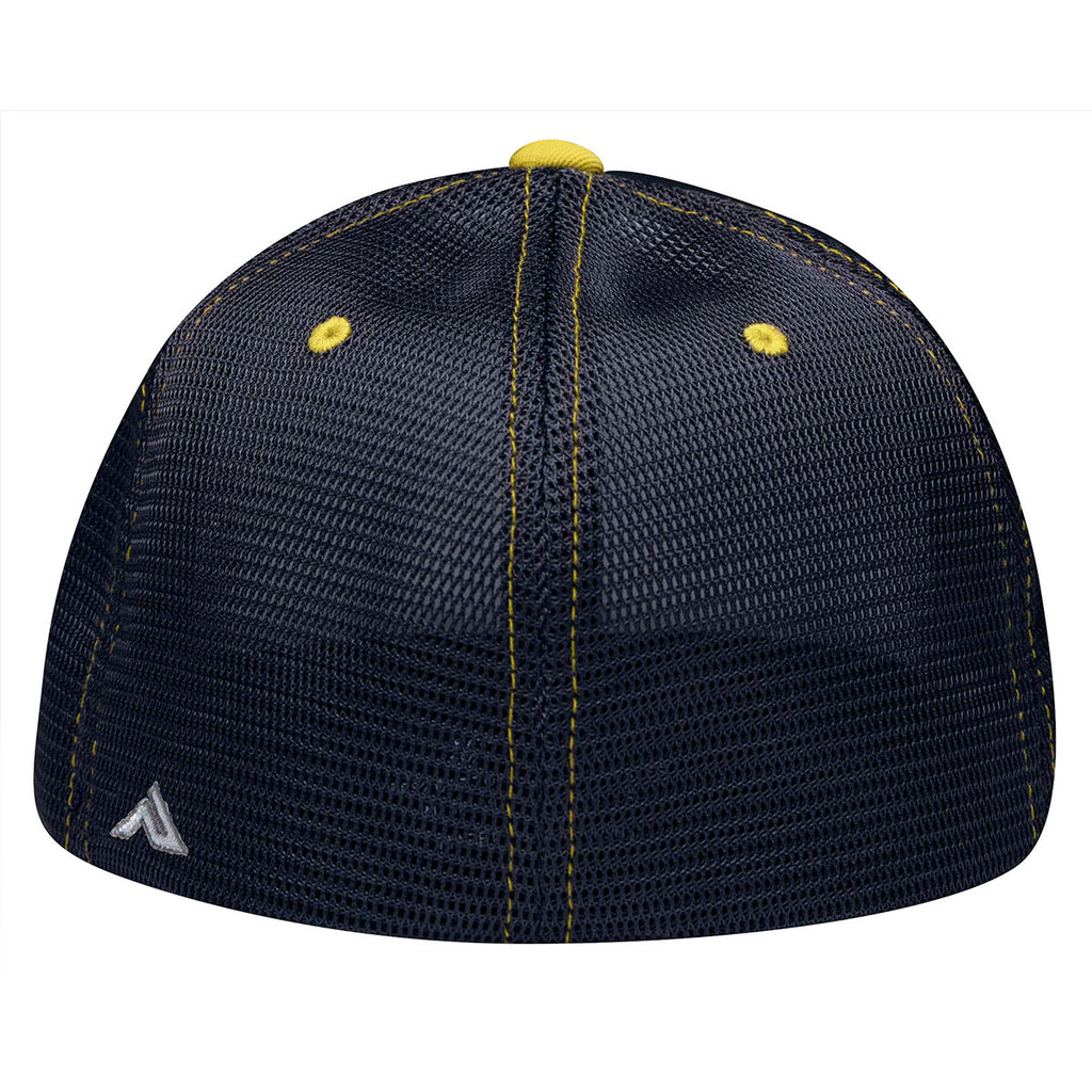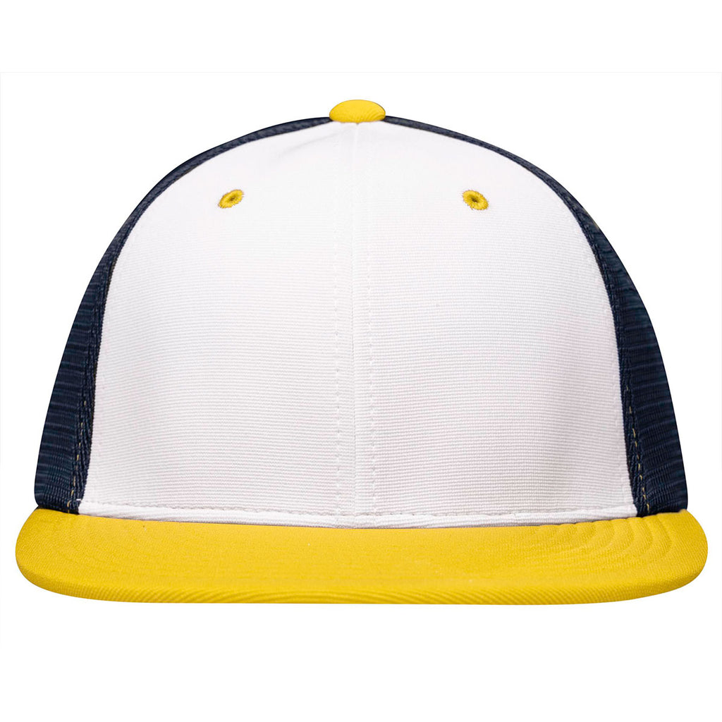 Pacific Headwear White/Navy/Gold Premium M2 Performance Trucker FlexFit Cap