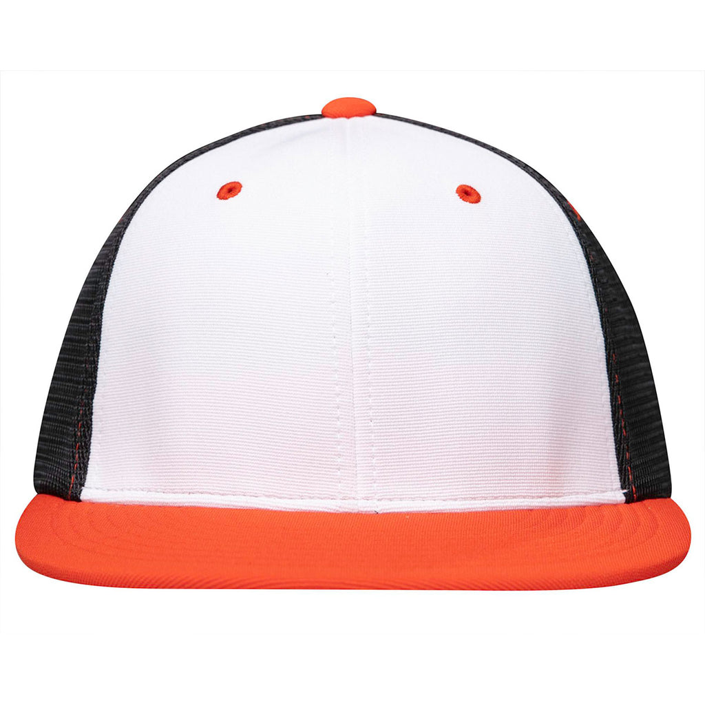 Pacific Headwear White/Black/Orange Premium M2 Performance Trucker FlexFit Cap