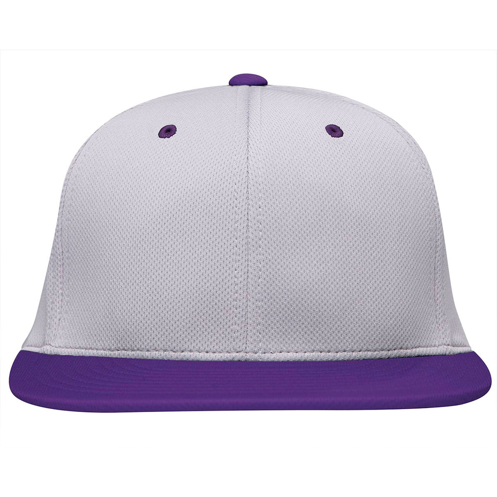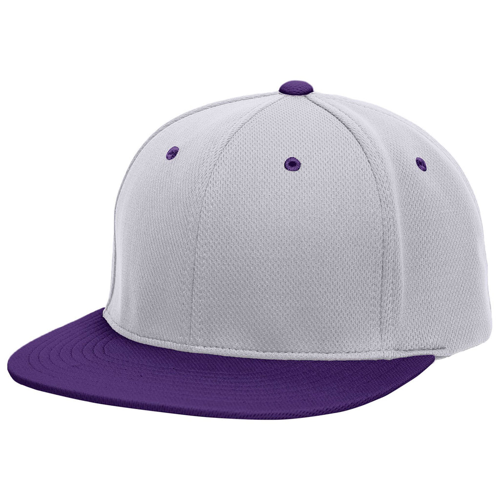 Turn heads with a custom embroidery Pacific Headwear Silver/Purple Premium P-Tec FlexFit Cap made of performance fabric and completed with a pro-stitched finish. The base color is made bolder with contrast colored eyelets and flat visor. Add a company logo to use as part of employee apparel to get your employees noticed or give them as custom gifts to loyal customers. The graphite undervisor with shapeable visor conforms to what you want and moisture wicking makes it comfortable for all day wear, even in warmer environments. A closed back means this is a one size fits most design.Highlights
