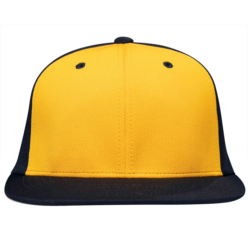 Turn heads with a custom embroidery Pacific Headwear Gold/Navy/Navy Premium P-Tec FlexFit Cap made of performance fabric and completed with a pro-stitched finish. The base color is made bolder with contrast colored eyelets and flat visor. Add a company logo to use as part of employee apparel to get your employees noticed or give them as custom gifts to loyal customers. The graphite undervisor with shapeable visor conforms to what you want and moisture wicking makes it comfortable for all day wear, even in warmer environments. A closed back means this is a one size fits most design.
