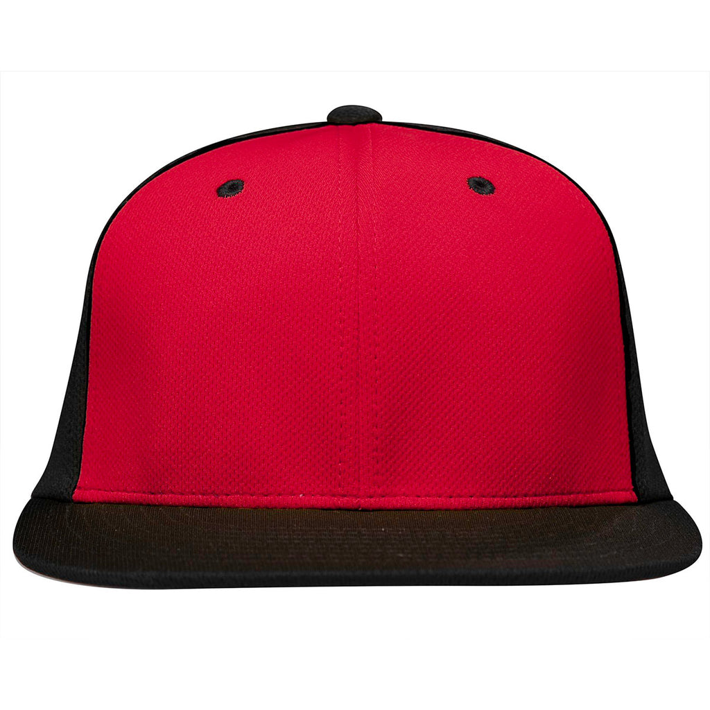 Turn heads with a custom embroidery Pacific Headwear Red/Black/Black Premium P-Tec FlexFit Cap made of performance fabric and completed with a pro-stitched finish. The base color is made bolder with contrast colored eyelets and flat visor. Add a company logo to use as part of employee apparel to get your employees noticed or give them as custom gifts to loyal customers. The graphite undervisor with shapeable visor conforms to what you want and moisture wicking makes it comfortable for all day wear, even in warmer environments. A closed back means this is a one size fits most design.