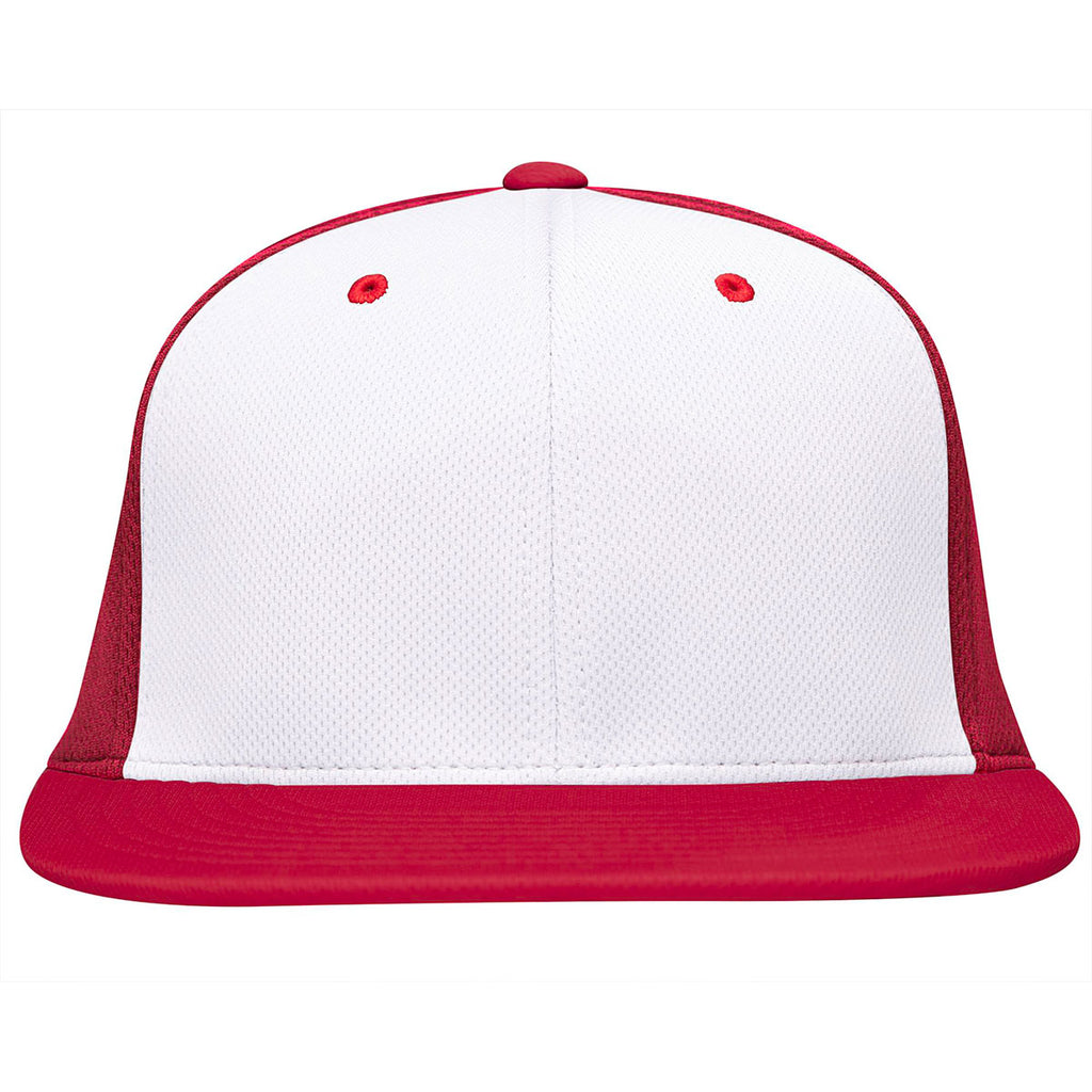 Turn heads with a custom embroidery Pacific Headwear White/Red/Red Premium P-Tec FlexFit Cap made of performance fabric and completed with a pro-stitched finish. The base color is made bolder with contrast colored eyelets and flat visor. Add a company logo to use as part of employee apparel to get your employees noticed or give them as custom gifts to loyal customers. The graphite undervisor with shapeable visor conforms to what you want and moisture wicking makes it comfortable for all day wear, even in warmer environments. A closed back means this is a one size fits most design.Highlights