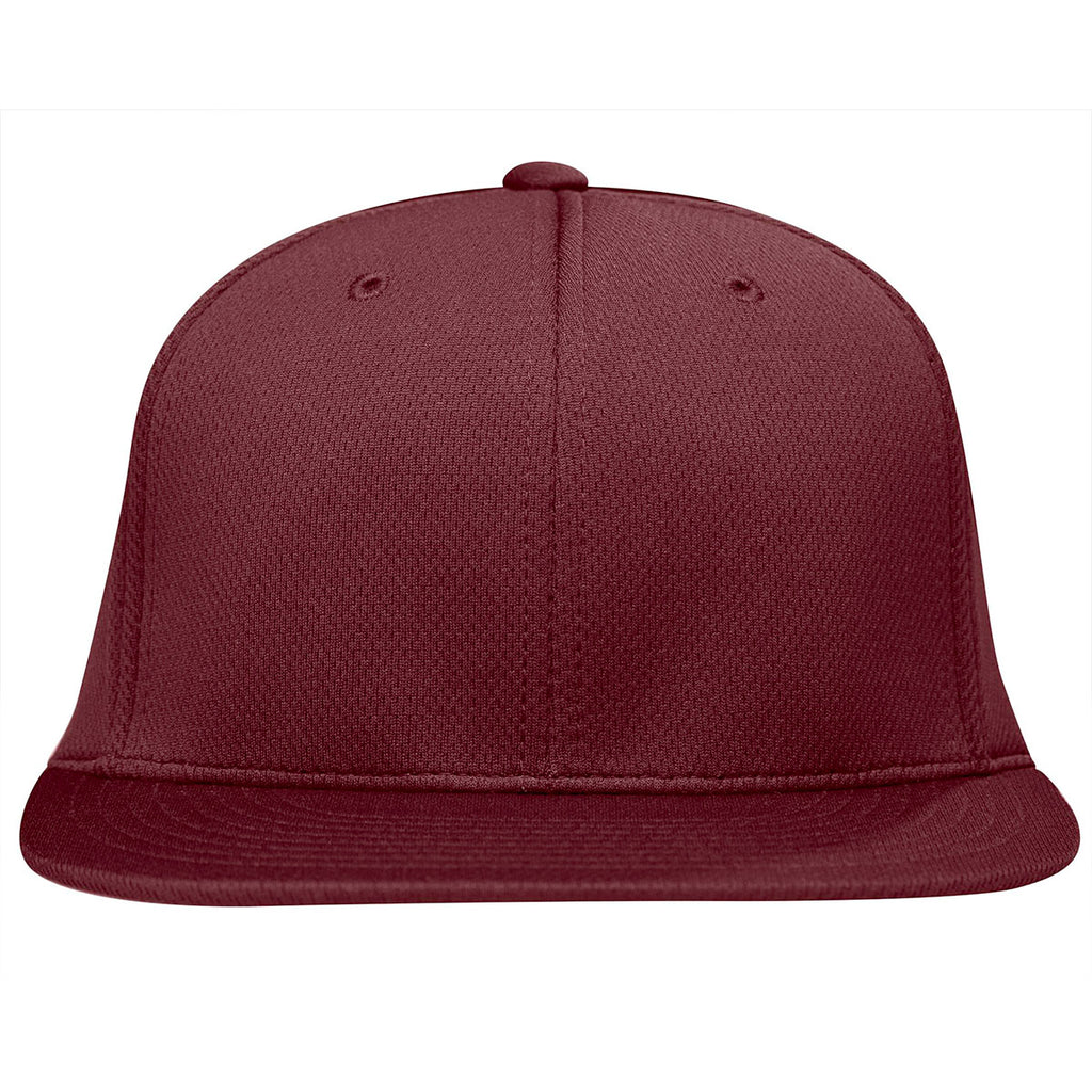 Turn heads with a custom embroidery Pacific Headwear Maroon Premium P-Tec FlexFit Cap made of performance fabric and completed with a pro-stitched finish. The base color is made bolder with contrast colored eyelets and flat visor. Add a company logo to use as part of employee apparel to get your employees noticed or give them as custom gifts to loyal customers. The graphite undervisor with shapeable visor conforms to what you want and moisture wicking makes it comfortable for all day wear, even in warmer environments. A closed back means this is a one size fits most design.Highlights