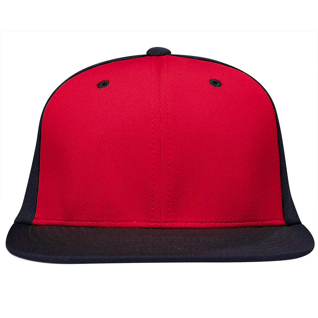 Turn heads with a custom embroidery Pacific Headwear Red/Navy/Navy Premium P-Tec FlexFit Cap made of performance fabric and completed with a pro-stitched finish. The base color is made bolder with contrast colored eyelets and flat visor. Add a company logo to use as part of employee apparel to get your employees noticed or give them as custom gifts to loyal customers. The graphite undervisor with shapeable visor conforms to what you want and moisture wicking makes it comfortable for all day wear, even in warmer environments. A closed back means this is a one size fits most design.