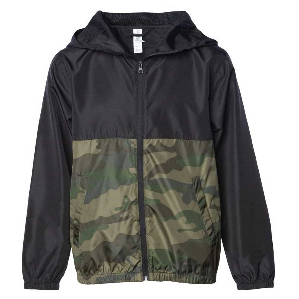 Independent Trading Co. Youth Black/Forest Camo Lightweight Windbreaker Zip Jacket