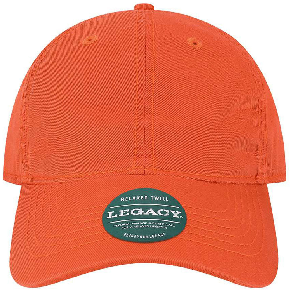 The Legacy Mandarin Orange Relaxed Twill Dad Hat is a classic accessory with a vintage-inspired sense of style. Available in a range of classic color options, adding your company's custom logo or design to the front of this 6-panel hat will create a stylish promotional accessory that will look great while spreading the word about your brand.Highlights