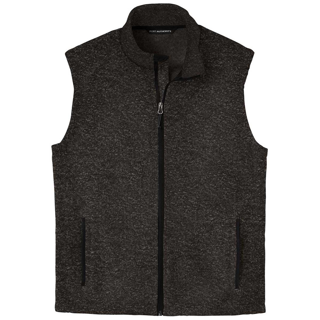 Port Authority Men's Black Heather Sweater Fleece Vest