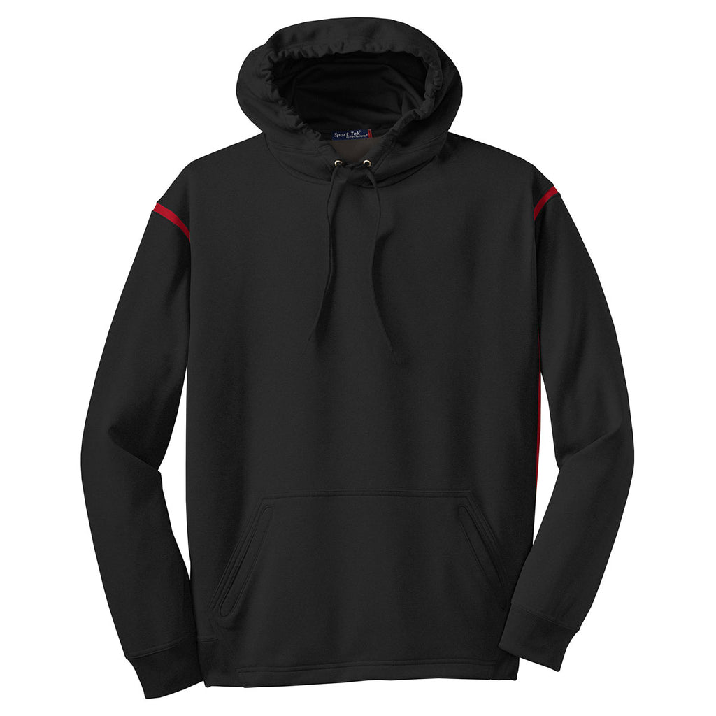 Sport-Tek Men's Black/True Red Tech Fleece Colorblock Hooded Sweatshirt