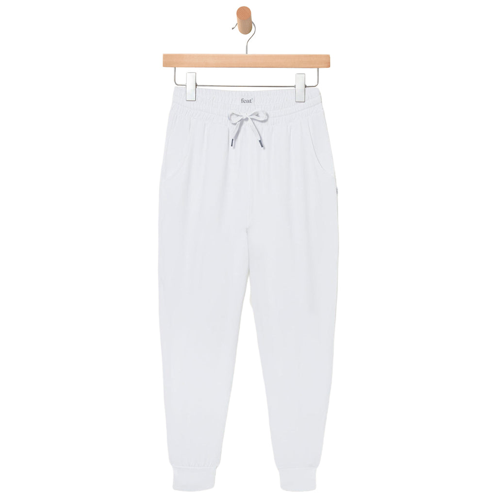 The Feat Women's White FlowTech Roam Jogger are the kind of joggers that are perfect for any occasion - that's why they'll make sure all eyes are on your company's custom logo or design. It doesn't matter if your team is getting active at the gym or relaxing in style, these stylish sweatpants will keep them comfortable thanks to the special FlowTech fabric.Corresponding Men's Style: Feat Men's White FlowTech Roam Performance Pants