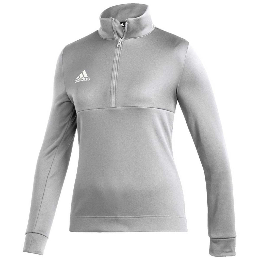 Add embroidery to the Adidas Women's Grey Two/White Team Issue 1/4 Zip for a look that will stand out on the track, at the gym, or wherever you happen to be. The gorgeous mixed material 1/4 zip has Aeroready technology to help keep you dry with moisture management that keeps you ready for the day. Wear alone or layered with a 1/4 center zipper and stand up collar for protection from the wind. This 1/4 zip has a soft feel and is fast drying for after workout cleaning. Highly durable, add a custom logo to the pullover to use as a team uniform, employee gift, or even employee apparel.
