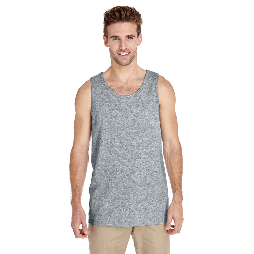 Hit the pool or the tennis courts in a custom Gildan Men's Sport Grey Heavy Cotton 5.3 oz. Tank in 15 bright and bold colors. The ideal employee apparel for those who work outdoors in the hottest months, your company logo will be displayed beautifully in the design of your choosing. The banded neck and arm holes mean this tank will hold its shape even if worn daily. Add a corporate name or sponsor to use as team gear for those on a basketball team or in track and field events, adding to team spirit. Place an order today to make sure you stand out from the crowd.Highlights
