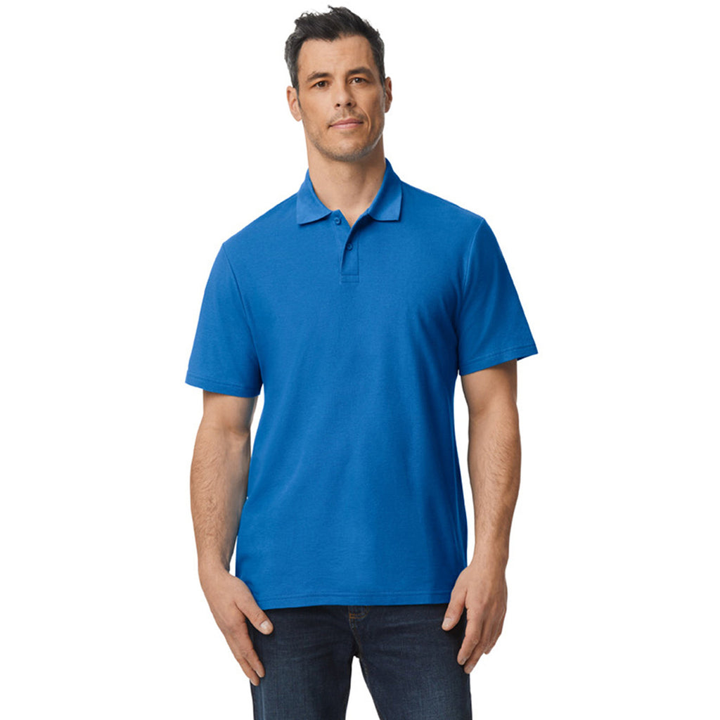 Gildan Men's Royal Softstyle Double Pique Polo with a corporate logo creates a put-together look that can go from the boardroom to the bar with ease. The classically styled polo pairs well with jeans, khakis, or dress slacks and a jacket to create the look you need. Place an order today.Highlights