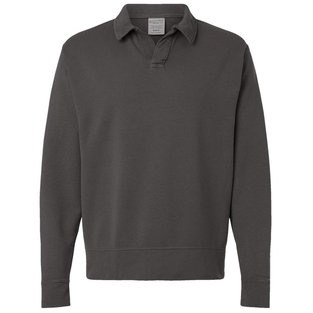 Retro meets refined in the ComfortWash by Hanes Men's New Railroad Grey Garment-Dyed Polo Collar Sweatshirt. Its soft-washed feel and unique collar detail make it a corporate standout for hospitality, casual uniforms, or upscale branded gifts. Custom logos pair perfectly with its throwback charm.Highlights