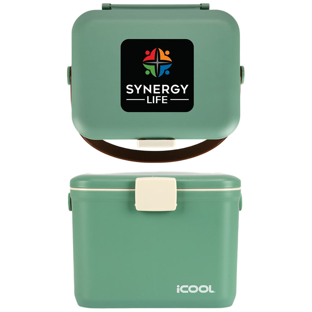 Perfect for corporate events or business giveaways, the iCOOL Green Hale 6-Can, 5.25 Qt Hard Sided Cooler offers secure, insulated storage with rugged appeal. The hard-shell design keeps items cold and protected, while the top handle ensures portability. Ideal for field crews, tailgates, or branded incentive programs that make an impact beyond the office.The minimum order for this product is 24 pieces.