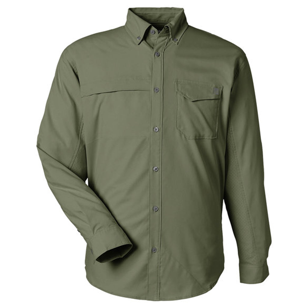 Design a corporate logo for the HUK Men's Moss Tide Point Long Sleeve Shirt for a professional look that can be worn alone or with a jacket to create an overall style. The button-up style creates a perfect uniform or all around shirt that can go from the office to a night out with friends with ease.