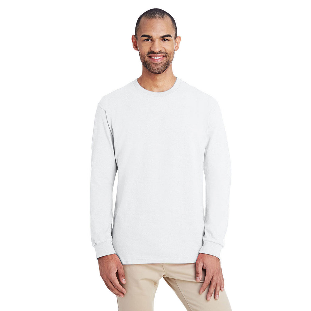 Gildan Unisex White Hammer 6 oz. Long-Sleeve T-Shirt allows you to create custom employee apparel that everyone will love. With screen print available on most items these 100% combed ring spun cotton long-sleeve tees make great giveaways at recruiting events complete with your company logo. Add a corporate logo to use as part of a team uniform for organized sports or work retreats as these will stand up to almost anything you throw at them. Wear for a morning run or during a pickup game of football as these are ideal on or off the job. Place an order today to be prepared for whatever needs you have.Highlights