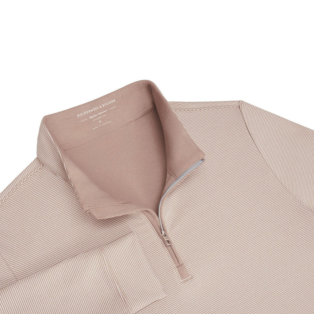 Custom-designed for performance and polish, the Holderness & Bourne Men's Dune & White The Sherwood Pullover in deep teal and white combines a modern quarter-zip silhouette with breathable stretch fabric. The bold contrast chest stripe offers elevated visual appeal. At the same time, the tailored fit ensures comfort from tee time to post-round gatherings. It's a smart mid-layer with a standout style.Highlights