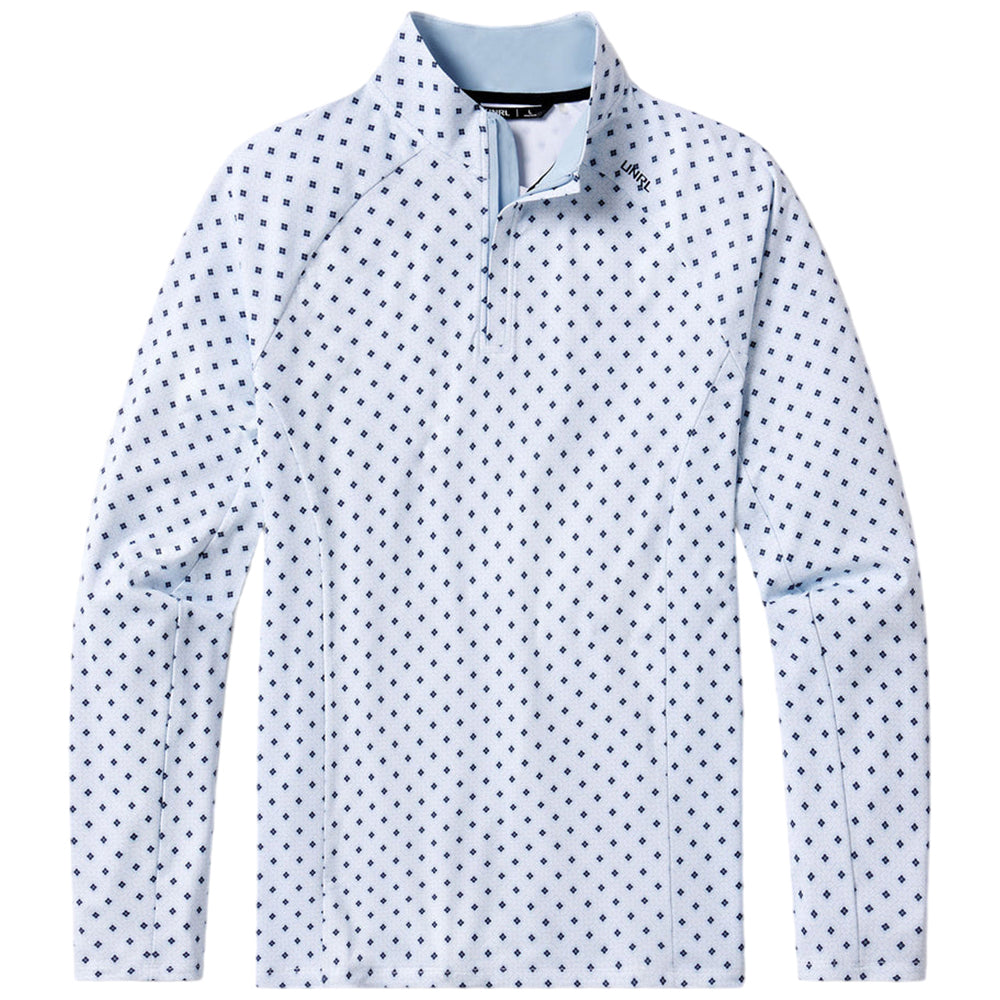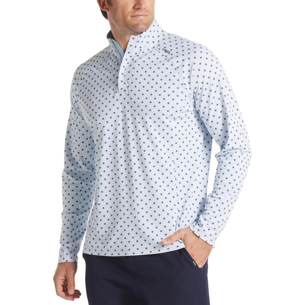 UNRL Men's Windsor Blue Highlands Quarter Zip provides light weight SPF protection in a novel performance fabric. A refined layering piece that easily transitions from the office to the golf course. Contoured at the shoulders and throughout the body, this quarter zip allows full range of motion at the tee box. The only thing missing is a custom logo to outfit your entire team.