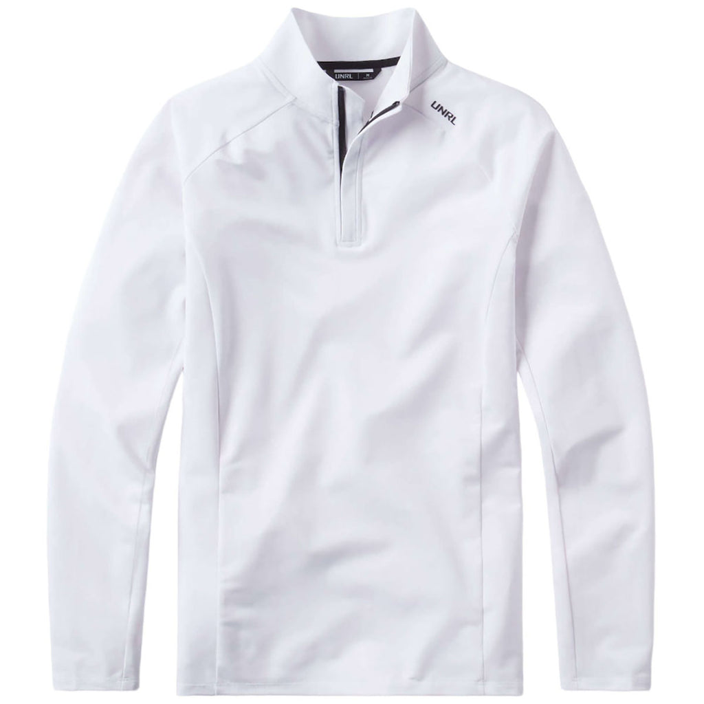 The UNRL Men's White Highlands Quarter Zip provides light weight SPF protection in a novel performance fabric. A refined layering piece that easily transitions from the office to the golf course. Contoured at the shoulders and throughout the body, this quarter zip allows full range of motion at the tee box. The only thing missing is a custom logo to outfit your entire team.