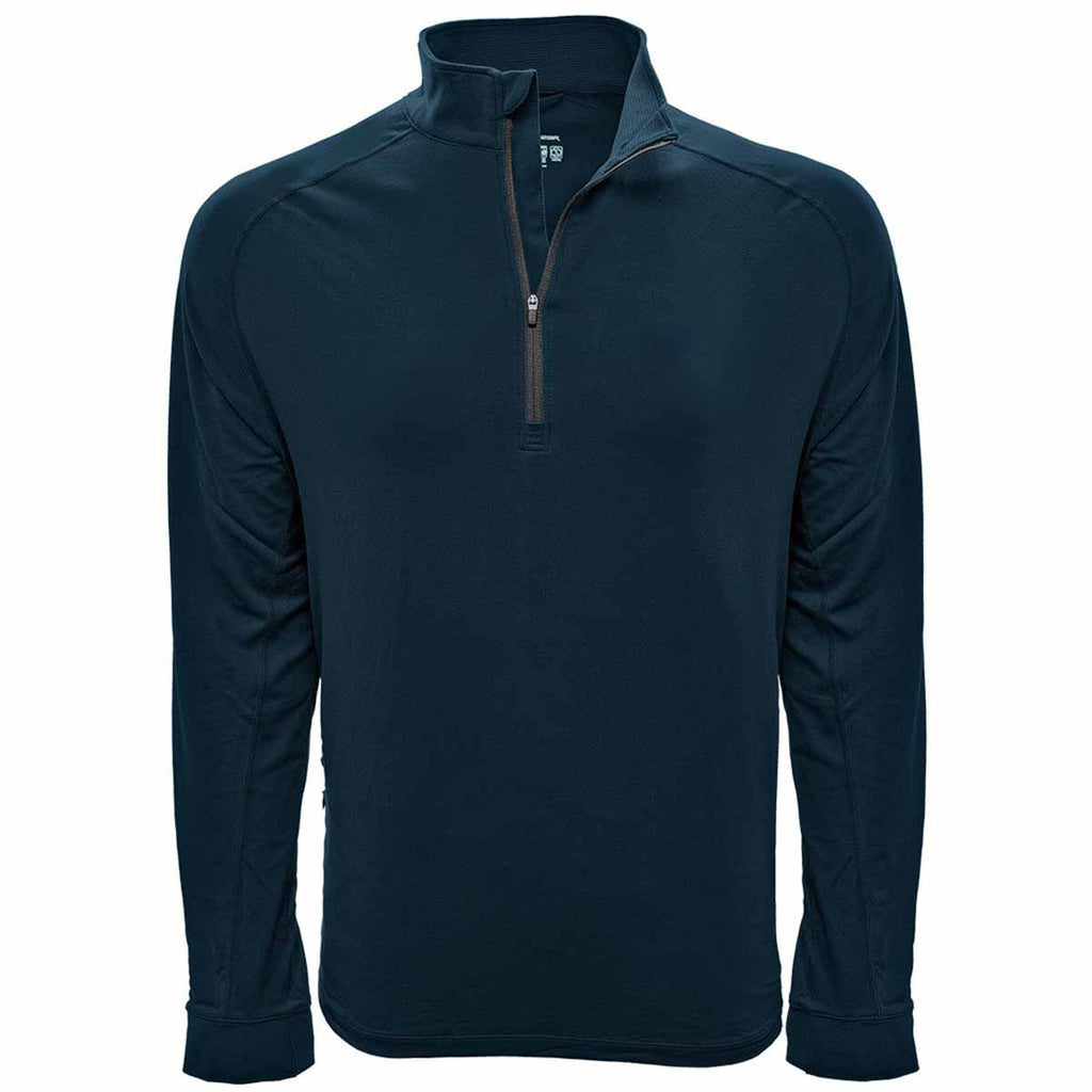 Performance stretch fabric makes the custom logoed Levelwear Men's Navy Peak Quarter Zip ideal for active professionals. Anti static properties prevent unexpected shocking moments during outdoor civic events. Twelve percent spandex combines with tear resistant polyester to produce a quarter zip for all seasons. Wear the stylish corporate apparel to work as an outer layer and put on the moisture wicking jacket as an inner layer to ensure maximum comfort during both cold and warm weather months. Attach your company logo to create a powerful marketing platform for your products and services.