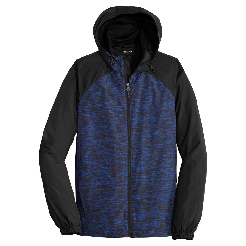 Stylish only begins to tell the fashion story for the Sport-Tek Men's True Royal Heather/Black Colorblock Raglan Hooded Wind Jacket. The slight drop tail hem and exposed Vislon zipper give the heather print jacket a unique appearance that is sure to turn heads. While you're turning heads, why not add your company logo to get your brand noticed in the community. The half elastic, half self-fabric cuffs allow you to enjoy maximum comfort and flexible hand movements. One-hundred percent polyester comprises the shell that keeps you warm on blustery days. Convenient front zippered pockets store all of your electronic devices.Corresponding Women's Style: Sport-Tek Women's True Royal Heather/Black Colorblock Raglan Hooded Wind Jacket