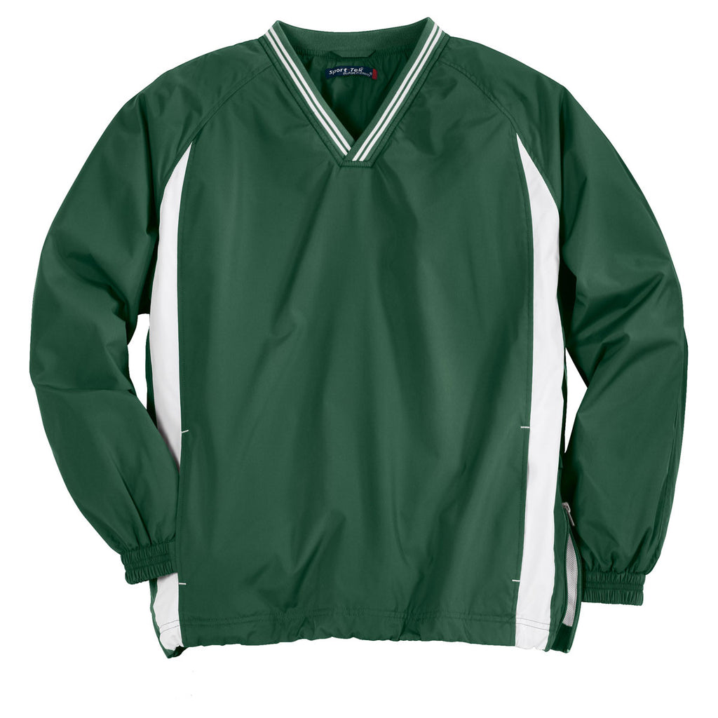 An item like might be as comfortable as it gets, but don't forget the Sport-Tek Men's Forest Green/White Tipped V-Neck Raglan Wind Shirt also serves a practical purpose: warmth. And it'll keep you stylish. And it doesn't hurt that it can make some great company apparel upon which you can add your corporate logo. Just add that logo to this and you'll have a gift, a giveaway, a uniformheck, you can do whatever you like with it.Highlights