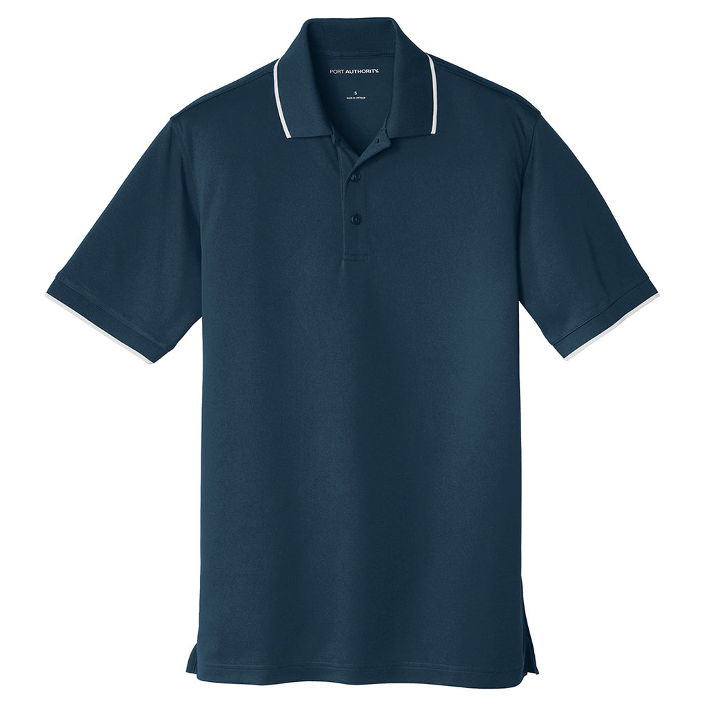 Port Authority Men's River Blue Navy/White Dry Zone UV Micro-Mesh Tipped Polo