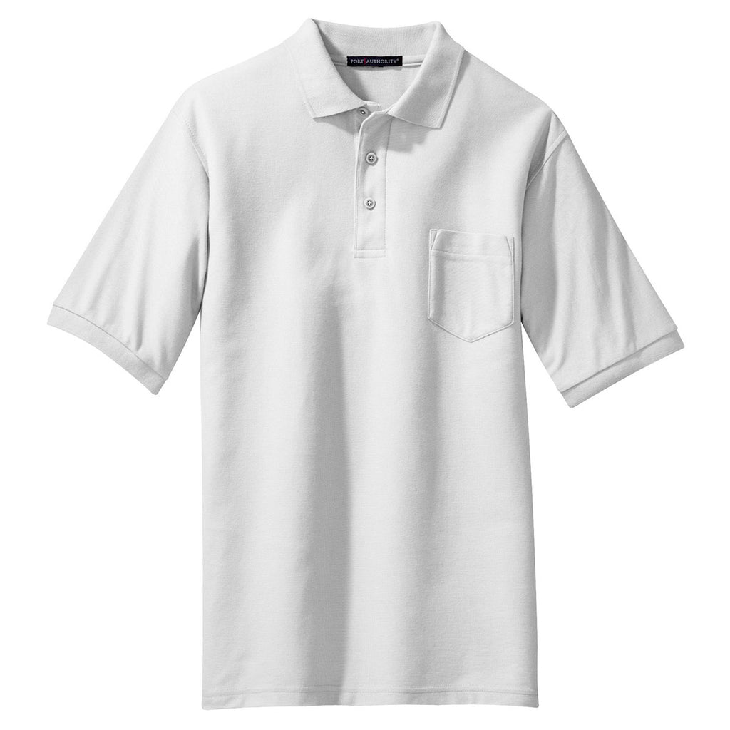 Port Authority Men's White Silk Touch Polo with Pocket