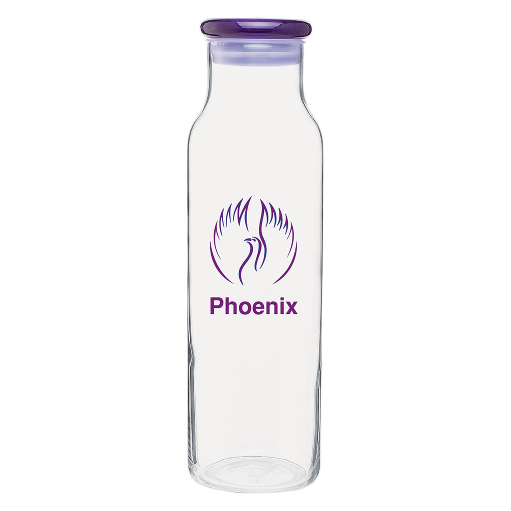 A sleek, sophisticated, and classic single-wall H2Go Purple Vibe Glass Bottle 22 oz intended to be reusable glassware to cut down on plastic waste. It has a generous 22-oz capacity and features a push-on lid. Represent your brand message in an elegant and professional way using this customized bottle as promotional corporate gift.