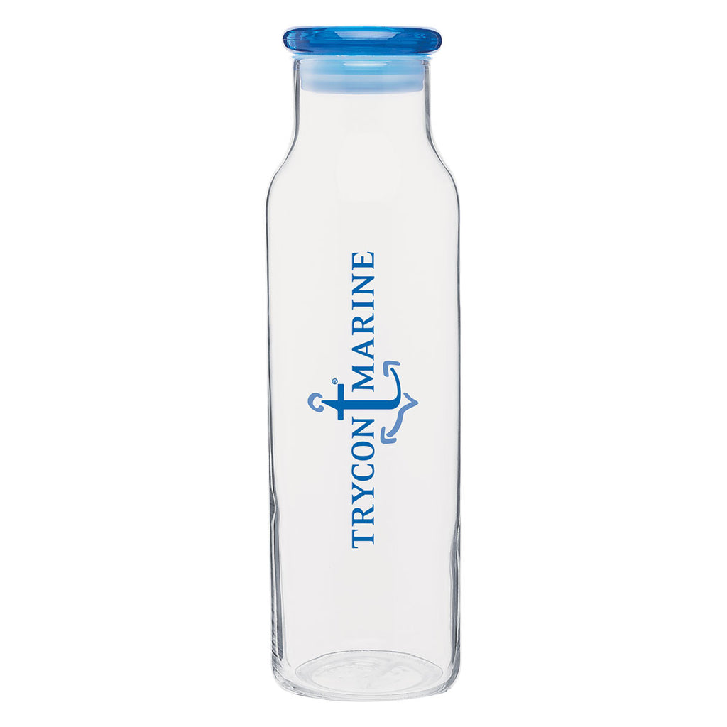 A sleek, sophisticated, and classic single-wall H2Go Aqua Vibe Glass Bottle 22 oz intended to be reusable glassware to cut down on plastic waste. It has a generous 22-oz capacity and features a push-on lid. Represent your brand message in an elegant and professional way using this customized bottle as promotional corporate gift.