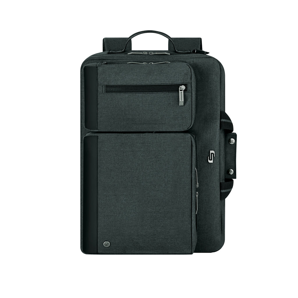 Ensure your company's logo or message gets multi-dimensional exposure with this Solo Grey Duane Hybrid Briefcase when its used as a briefcase in a corporate ambiance and as a backpack in the casual backdrop. Enter the hybrid backpack with this briefcase-backpack that takes the best of both types and blends them into an easy-to-carry storage system that can sling across your shoulder or carried in hands.The minimum order for this product is 12 pieces.